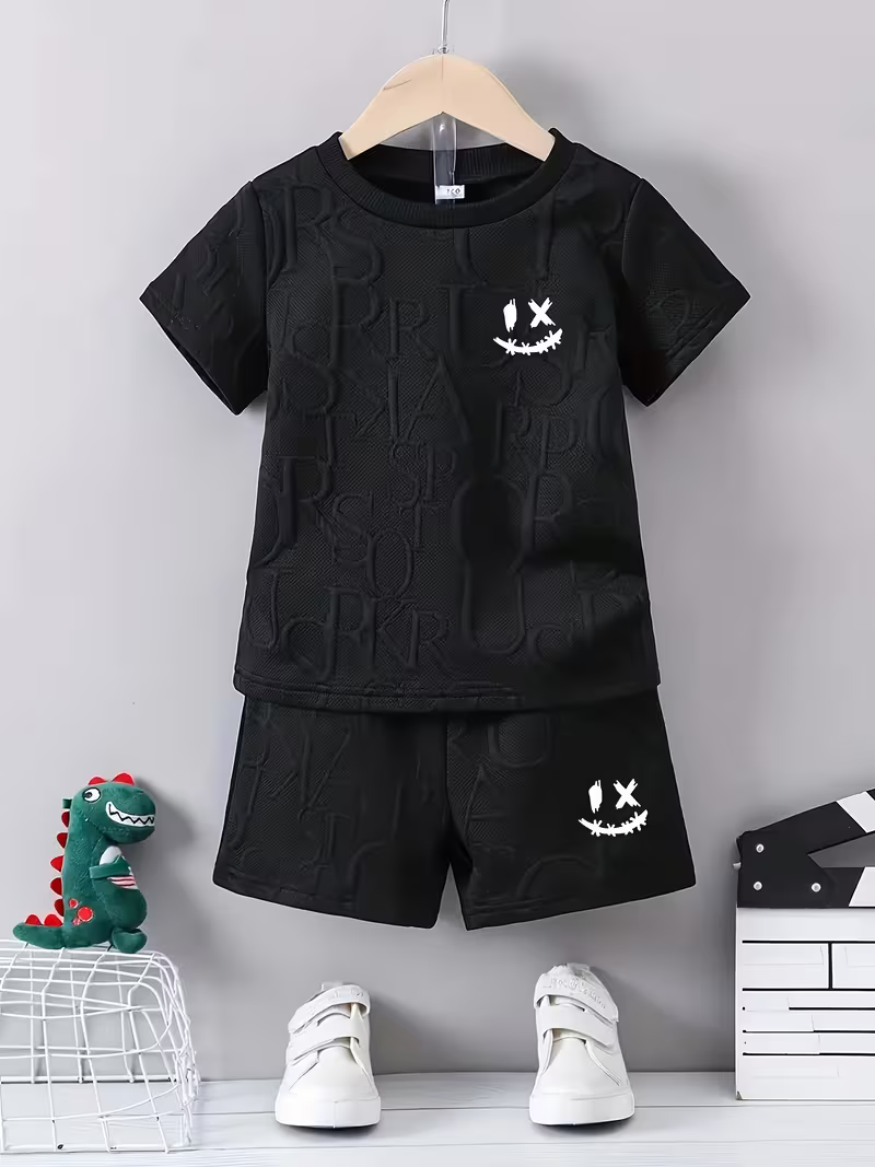 Casual Embossed Short-Sleeve T-Shirt And Shorts
